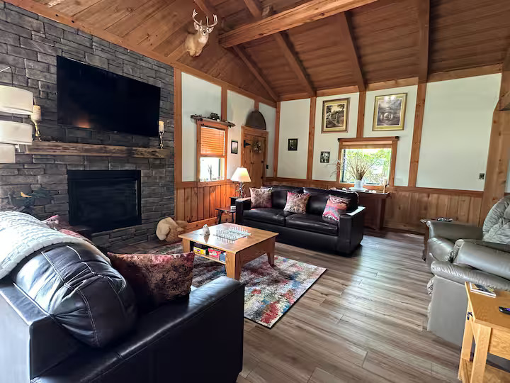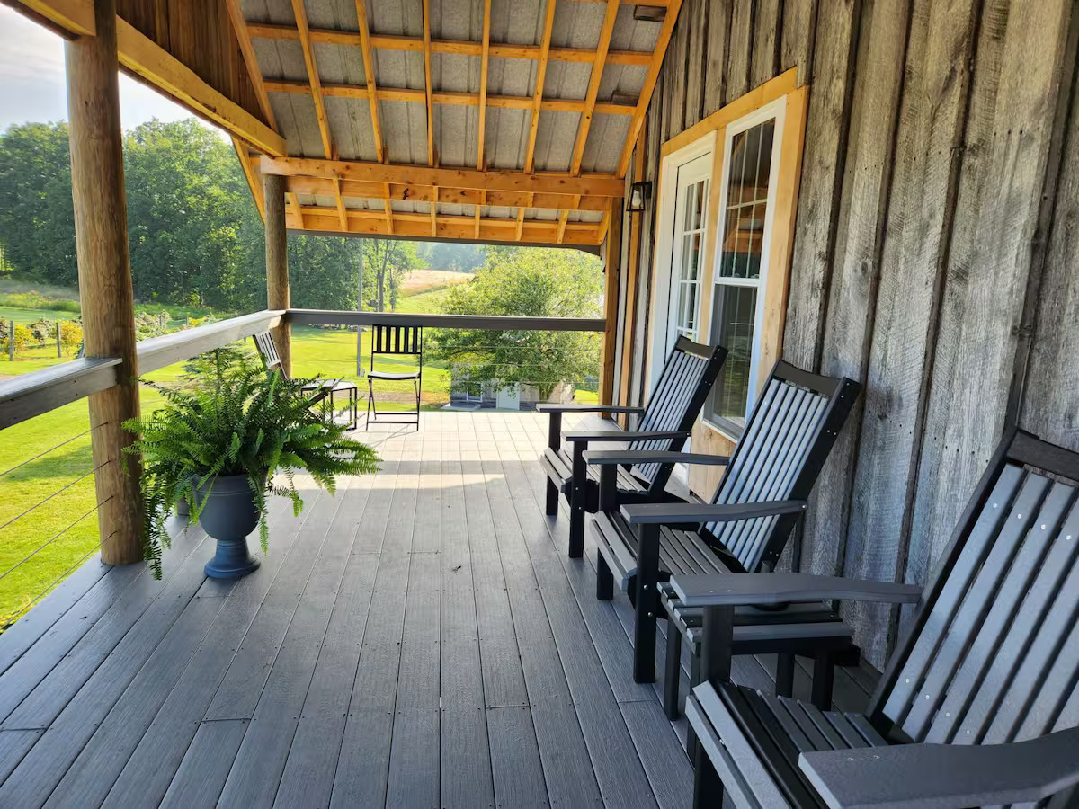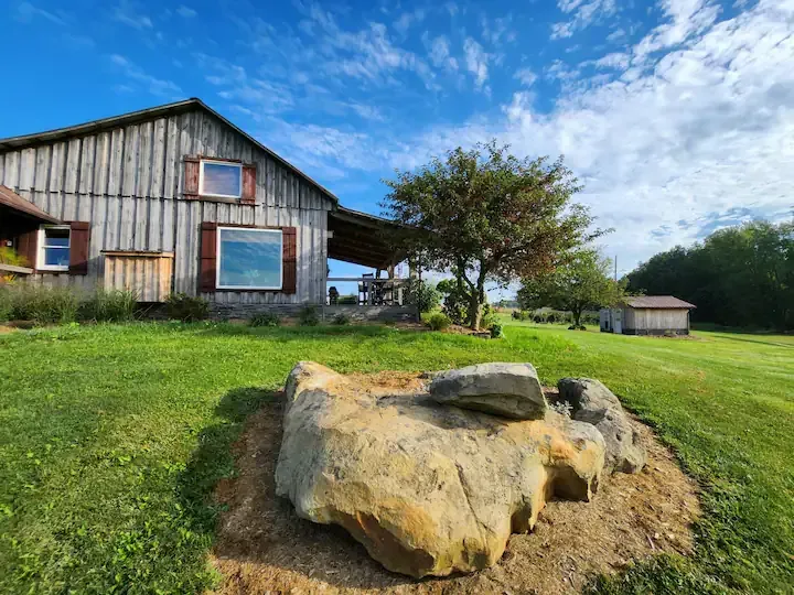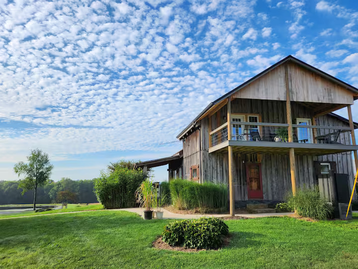 Breathtaking cabin located near some of Ohio’s finest attractions. The Hollyberry House boasts beautiful panorama views from every direction. With eight ponds and over 150 acres of farm, forest and magical ravines to explore you will find it difficult to be bored. There is also a functioning winery on site with bottles available for purchase.